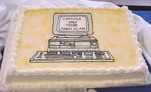 Orange Coast College the first two year college to ever teach computers, has made the move from the sphere of the mainframe to that of the personal computers. These pictures were taken during the week of the open house. {a nice cake other goodies were served at the open house}