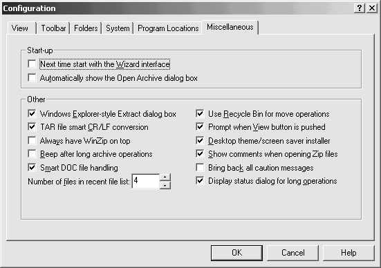Figure 6 -9: Setting miscellaneous WinZip configuration options